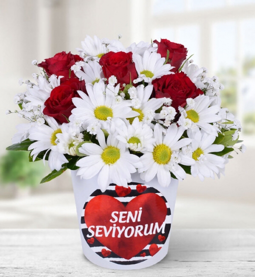 Papatyanın güzelliği, kırmızı gülün asilliğine karşı. Bu yarışta kazanan sevdikleriniz olacak. Not: Papatyaların yapısı gereği aranjmandaki çiçek adedine tomurcuklar da dahildir.