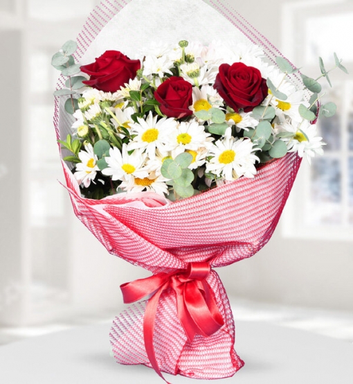 Çiçek en basit haliyle hemen her duygunun doğada hayat bulmuş şeklidir. Beyaz krizantemin baharın enerjik havasını taşıdığı, insanoğlunun en temel güdüsü sevmenin karşılığı kırmızı gülün şıklığını bir araya getiren, yalınlığın zarafetini yansıtan el buketi. Not: Krizantemlerin yapısı gereği aranjmandaki çiçek adedine tomurcuklar da dahildir.