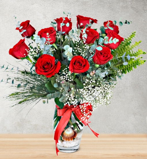 Çiçek ve görsellik birbirinden ayrılmayan iki unsurdur. Sunumda ya da tasarımda şıklık çiçek gönderiminde önemlidir diyenler için kırmızı güllerin çeşitli yeşillikler ve cipsofilyalarla bir araya geldiği sade ama şık vazo aranjmanı. Not: Güllerin renk tonları ve boyutları mevsim şartlarına göre değişkenlik gösterebilir.