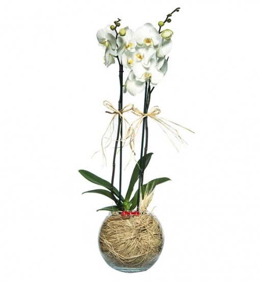 Fanus Cam İçinde Beyaz Çiftli Orkide : 1 Adet