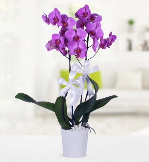 1. Sınıf ithal mor phalaenopsiz orkide kullanılmıştır. Çiçek yüksekliği yaklaşık 60 cm dir.