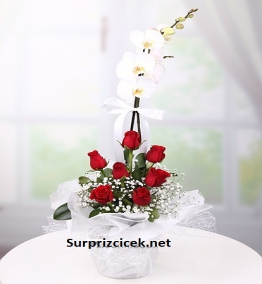 Orkide ve güllerden hazırlanan şık bır aranjman. Aşkınızı en güzel biçimde bu şık dizayn ile anlatacaksınız.