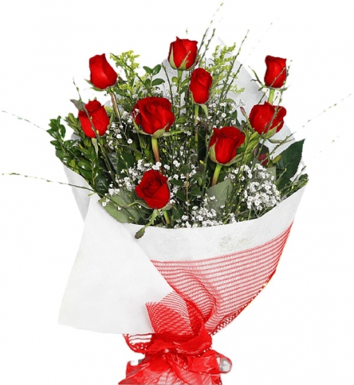 1. Sınıf kırmızı güller kullanılmaktadır. Buketin yaklaşık yüksekliği 50 cm