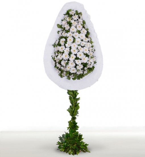 Beyaz gerbera ile hazırlanmış tek katlı açılış ve düğün çelenkleri.