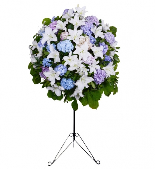 Beyaz lilyum, renkli ortanca ve yeşillikler ile hazırlanmış açılış, düğün, nişan ve nikah çiçeği.
