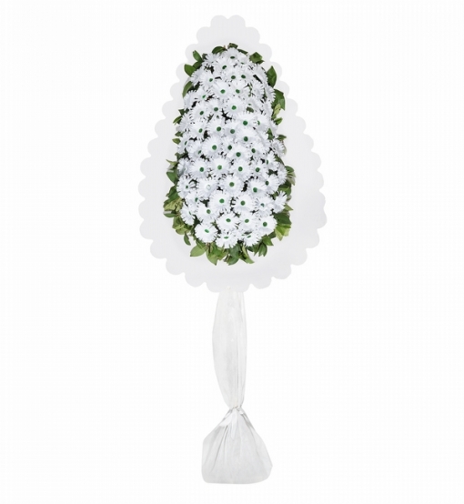 Beyaz yapay gerbera ile hazırlanmış tek katlı açılış ve düğün çiçeği.