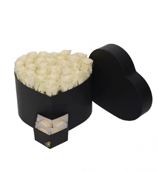 Kalp Kutuda Beyaz Güller & Makaronlar – Zarafet ve Tatlılık Bir Arada