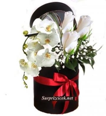 Sevginizi anlatacak kırmızı güllerden siyah kutu içerisine hazırlanmış  orkide'nin zerafeti ile hareketlendirilmiş aranjman ile sevdiğinizi çok mutlu edeceksiniz.