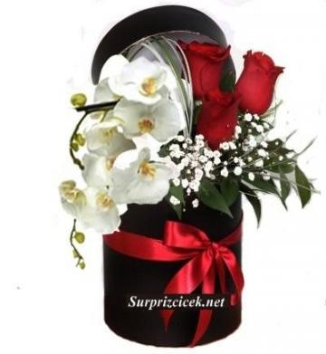 Sevginizi anlatacak kırmızı güllerden siyah kutu içerisine hazırlanmış  orkide'nin zerafeti ile hareketlendirilmiş aranjman ile sevdiğinizi çok mutlu edeceksiniz.