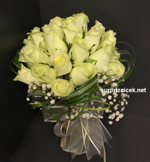 Canlı beyaz güllerden hazırladığımız şık gelin el çiçeği. Sonsuz sevginin sembolü beyaz güllerden hazırlanan gelin el çiçeğimiz sade olduğu kadar şıklığı da tamamlayıcı aksesuar olarak güzelliğinizi bütünleyecek. Gelinlikle en uyumlu renk olan beyazı el çiçeğinde de tercih ediyorsanız canlı gelin çeiçeği siparişiinizi tek tıkla oluşturun. Canlı gelin çiçeklerimiz en taze çiçeklerden hazırlanır. Siparişlerinizi Bursa'nın her yerine ulaştırıyoruz.
