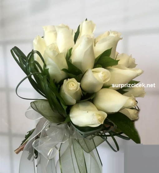 İthal beyaz güllerden hazırlanan gelin çiçeğinin etrafı belgras yeşillik ile tanzim edildi. Sonsuz sevginin simgesi güllerin sapları açık kurdeleler ile tamamlanarak şıklığı arttırıldı. Beyaz Gelin Çiçeği ile tüm dikkatleri üzerinize çekmek isterseniz tek tıkla siparişlerinizi iletebilirsiniz. Canlı ve taptaze güllerle hazırlanan gelin çiçeği ile gelinliğin ihtişamını arttırabilirsiniz. Capcanlı gelin çiçeğiniz bizden. Tektıkla sipariş verin mutluluğunuza ortak olalım...