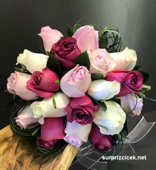 Hayatınızın en anlamlı "Evet" yanıtında capcanlı pembeli güllerden hazırladığımız gelin el buketi ile yanınızda olmak istiyoruz. Güllerin en güzel renklerinden hazırlanan gelin el buketi ile fotoğraflarda daha canlı pozlar vereceksiniz. Beyaz, pembe ve gülkurusu renklerdeki ithal güller ve yeşilliklerle hazırlanan gelin çiçeğini uygun renklerdeki kurdelalarla süsledik. Canlı gelin el çiçeği siparişlerinizi en az bir gün önceden verebilirsiniz. Telefonla veya netten gelin çiçeği siparişlerinizi bekliyoruz.