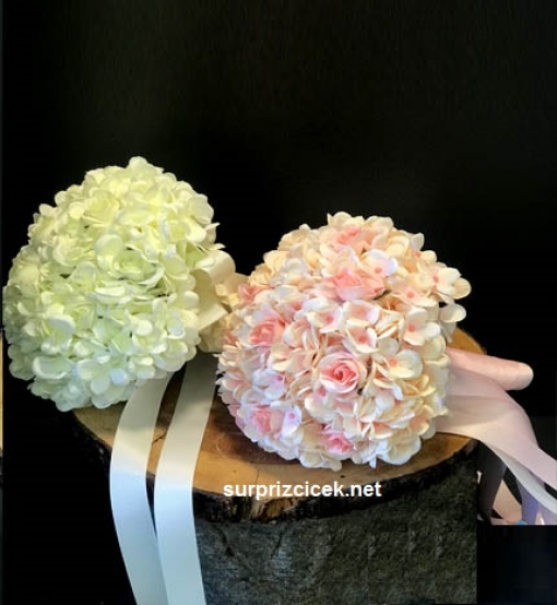 Yapay ortancaların arasına mini güllerin tanzim ederek hazırladığımız gelin el çiçeği modelimiz. Pembe ve beyaz renklerde hazırlanan el çiçeğini isterseniz atmalık olarak da kullanabilirsiniz. Pembesi ayrı, beyazı ayrı güzel olan yapay ortanca gelin çiçeğini yıllar boyu evinizde en güzel köşede sergileyebilirsiniz. Pembe veya beyaz yapay ortanca gelin çiçeğini tek tıkla internetten veya telefonla sipariş oluşturabilirsiniz.