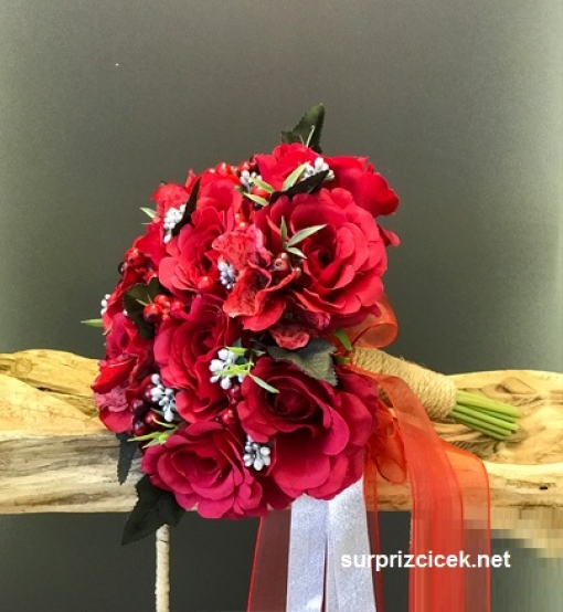 Kırmızı renk güller ve ara garnitürler kullanarak hazırladığımız yapay gelin çiçeği modelimizi Türkiye'nin her yerine kargo ile 1-3 iş günü içerisinde elinizde olacak şekilde gönderim yapmaktayız. Kırmızı renk yapay çiçeklerden oluşan el buketimizi uzun süre anı olarak evinizde sergileyebilirsiniz. Kırmızılı yapay el çiçeğini tek tıkla sipariş verin adresinize gönderelim.