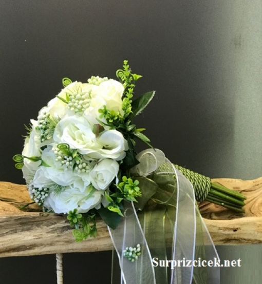 Beyaz güller ve aralarda cipsofilyalar kullanarak hazırladığımız yapay gelin buketi modelimiz. Uygun fiyatı ve görselliği ile en çok ilgi gören modellerimizden biri olan el çiçeği ile şıklığınızı tamamlıyoruz. Yeşil ve beyazın uyumlu dansını yansıtan gelin çiçeği modelimiz ile en özel gününüzde yanınızdayız. Uygun fiyatı ve güzelliği ile igi çeken el çiçeği modellerimizi tek tıkla sipariş verebilirsiniz. Bursa'nın her noktasına aynı gün gelin el buketi siparişlerinizi ulaştırıyoruz. Bursa dışına da kargo ile 1-3 iş günü içerisinde elinizde olacak şekilde gönderiyoruz.