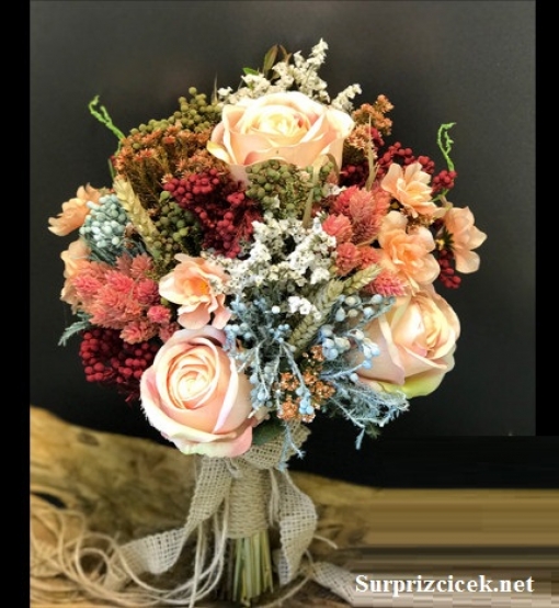 Hayattaki en anlamlı günlerinizde yapay gelin çiçeğimizle yanınızdayız. Yıllar yılı kalıcı bir anı olarak salonunuzda sergileyebileceğiniz gein buketimiz şık görünümü ile ev dekorasyonuna da canlılık katacaktır. Somon tonlarında yapay güller, başaklar ve ara garnitürler uyumlu renklerle de canlılık katacak şekilde tanzim edildi. Gelinlerin rüyalarını süsleyen fotoğraf karelerinde gösterişli el buketimizle yanınızda olmak için siparişlerinizi bekliyoruz. Tek tıkla yapay gelin buketimiz adresinizde olacaktır.