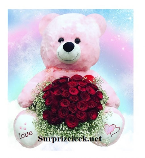 Büyük beyaz ayıcık ve kucağında 41 kaliteli gül...