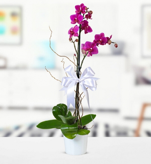 Orkide çiçek türü içinde ağırlığı ile olduğu kadar zarafetiyle farklı bir noktada durur. Zarafetinin yanı sıra çiçek siparişiniz için 55 cm boyu ile iddialı, çiçek gönderimlerinde şıklığı temel alanlar için ideal, seramik saksı içinde süslenmiş, mor orkide. Not; Orkideler, mevsim şartları ve ürünün yapısı gereği çiçek ya da tomurcuk adetlerinde değişkenlik gösterebilir. Orkidenin rengi stok durumuna bağlı olarak ton farklılığı gösterebilir.