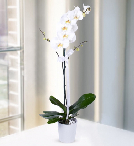 Beyaz Orkide (Seramikte) Seramik saksı içerisinde hazırlanmış 60 cm yüksekliğinde beyaz orkide bitkisi.