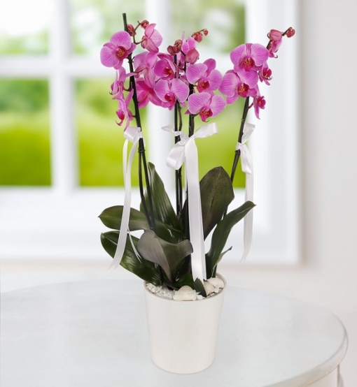 Mor rengi hem ihtişamı hem de sakinliği temsil eder. Bu yoğun anlamlı renge bir de orkidenin zerafeti eklenince ortaya çıkan mor orkideler, sevdikleriniz için tercih edebileceğiniz en özel çiçeklerden biri halini alıyor. Tebrik etmek, teşekkür etmek veya özel bir gününü kutlamak istediğiniz sevdiklerinize 4 dal orkidenin bir araya getirilmesi ile hazırlanan bu sürprizi sunabilir ve onları mutlu edebilirsiniz.