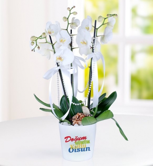 Sevdiklerinizin yeni yaşını eşsiz bir sürprizle kutlamak ister misiniz? Doğum Günü temalı saksısıyla 3 dal beyaz phalaenopsis orkide ile yeni yaş dileklerinizi özel bir şekilde dile getirebilirsiniz.