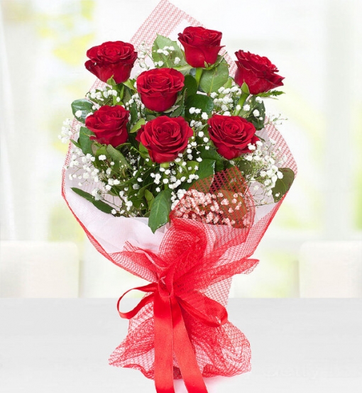 7 Kırmızı Gül Buketi 7 Adet kırmızı gül ve cipsofilyalar ile hazırlanmış el buketi.